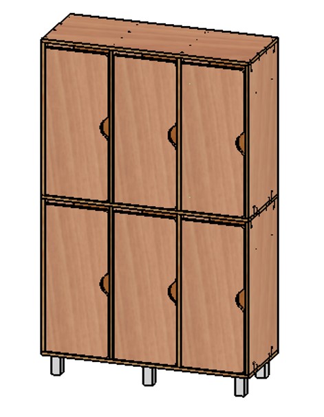 Шкаф выполнен из ЛДСП 16мм с кромкой ПВХ 0,4мм. Металлическая опора, 6 отделений.