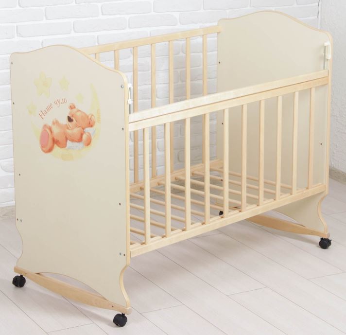 Детская кроватка «Мишка на луне» на колёсах или качалке, цвет бежевый