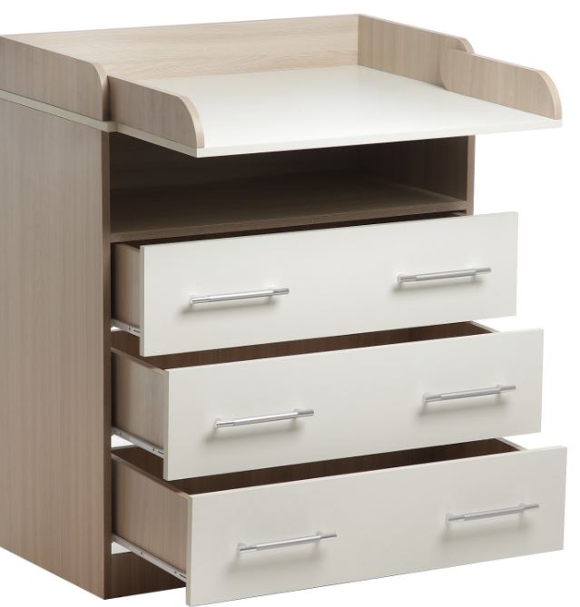 Комод КП- 3 пеленальный, 3 ящика, 1000х800х440(730), Ясень шимо светлый/Белый