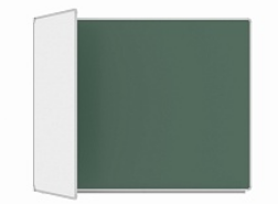 2ой элемент: боковая двухсторонняя комбинированная створка для мела и для маркера – 75 см, может независимо открываться и закрываться от плоскости основной части доски до плоскости стены.