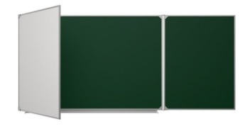 3-хэлементная для письма мелом и маркером, 3 рабочих поверхностей. Рабочая поверхность изготовлена из полимерного листа высочайшего качества, обрамление — высокопрочный алюминиевый профиль. Петли рассчитаны на нагрузку свыше 100 кг. Имеется лоток для мела/маркера и принадлежностей.