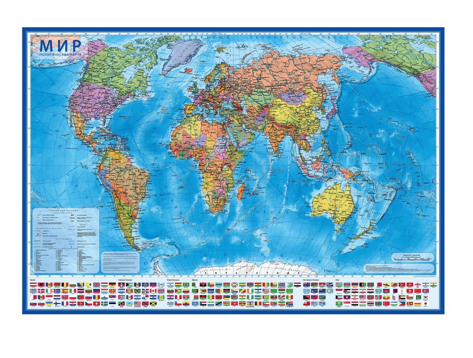 Карта мира политическая, 101 х 70 см, 1:32 М, ламинированная, в тубусе