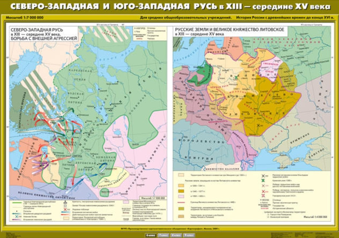 Учебн. карта "Северо-Западная и Юго-Западная Русь в XIII - середине XV века" (100*140)