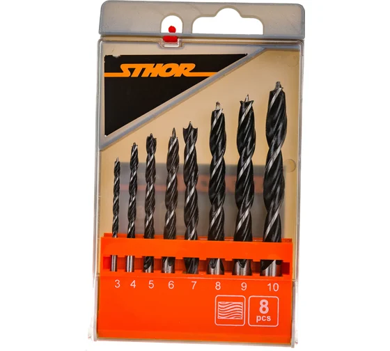 Набор сверл по дереву (8 пр, 3-10 мм) пластиковая кассета STHOR 22381