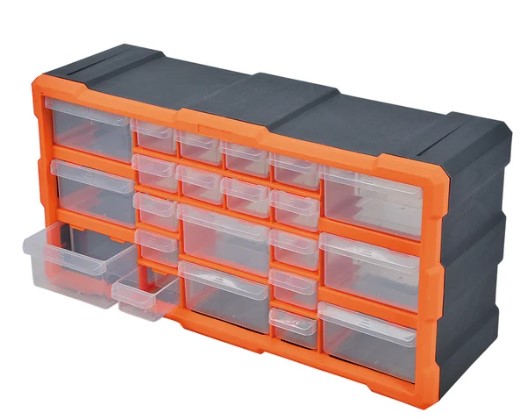 Бокс-органайзер Порядкофф DPB-022 для метизов 8 больших+14 малых выдвижных ячеек, черный/оранжевый 4