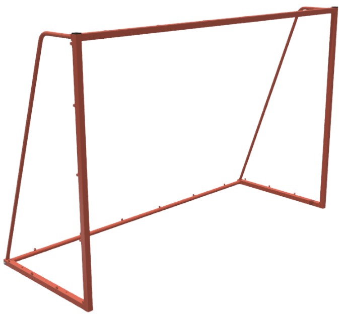 Ворота представляют собой сборную конструкцию, состоящую из правой и левой боковин, соединенных внизу горизонтальной стяжкой и вверху – перекладиной. Изготовлены из профиля 30мм. Вся конструкция покрыта порошковой эмалью. Без сетки. В комплекте 2 шт (пара).